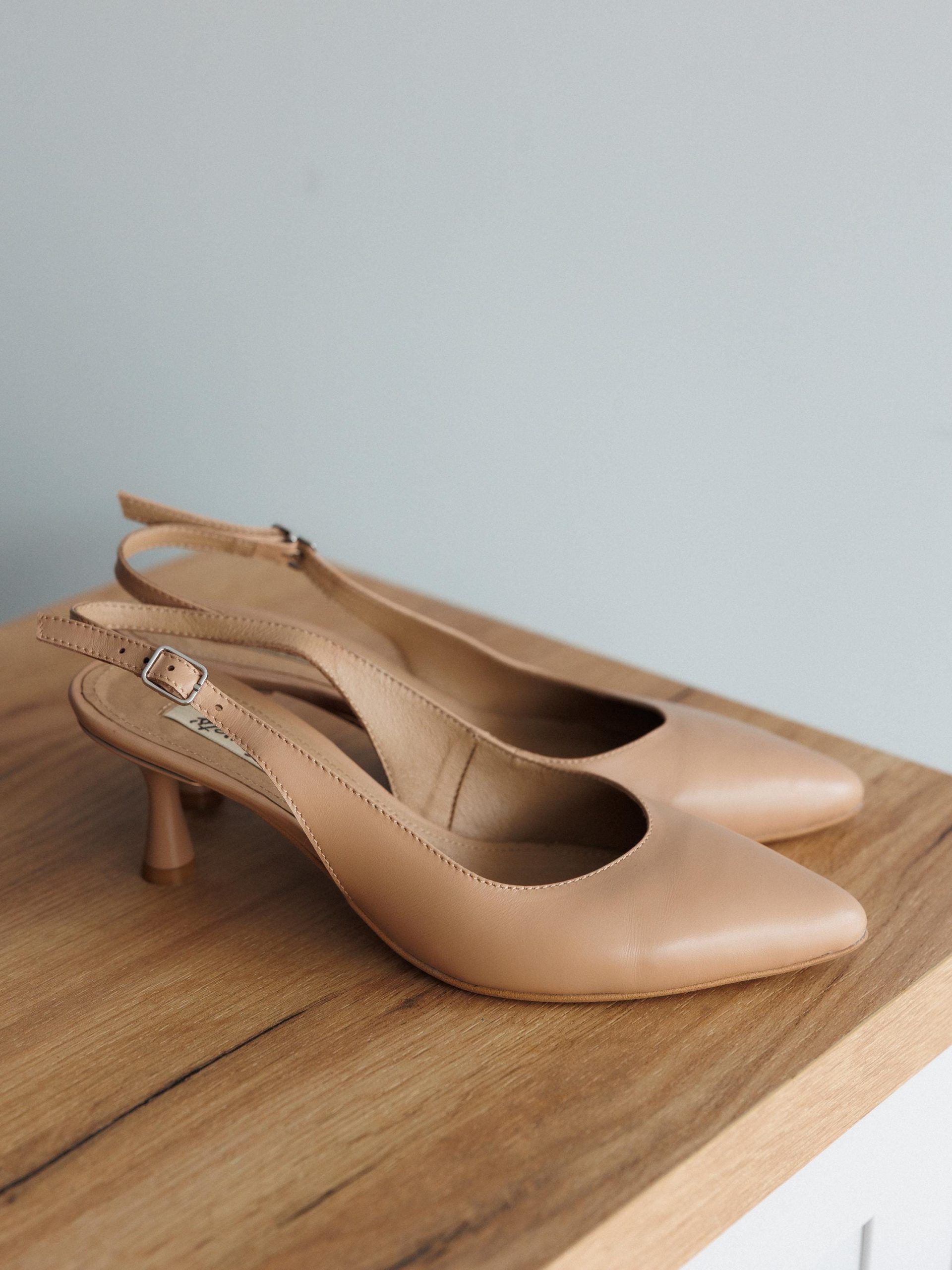 Beige Leather Shoes Womens Low Heel Pumps Comfortable