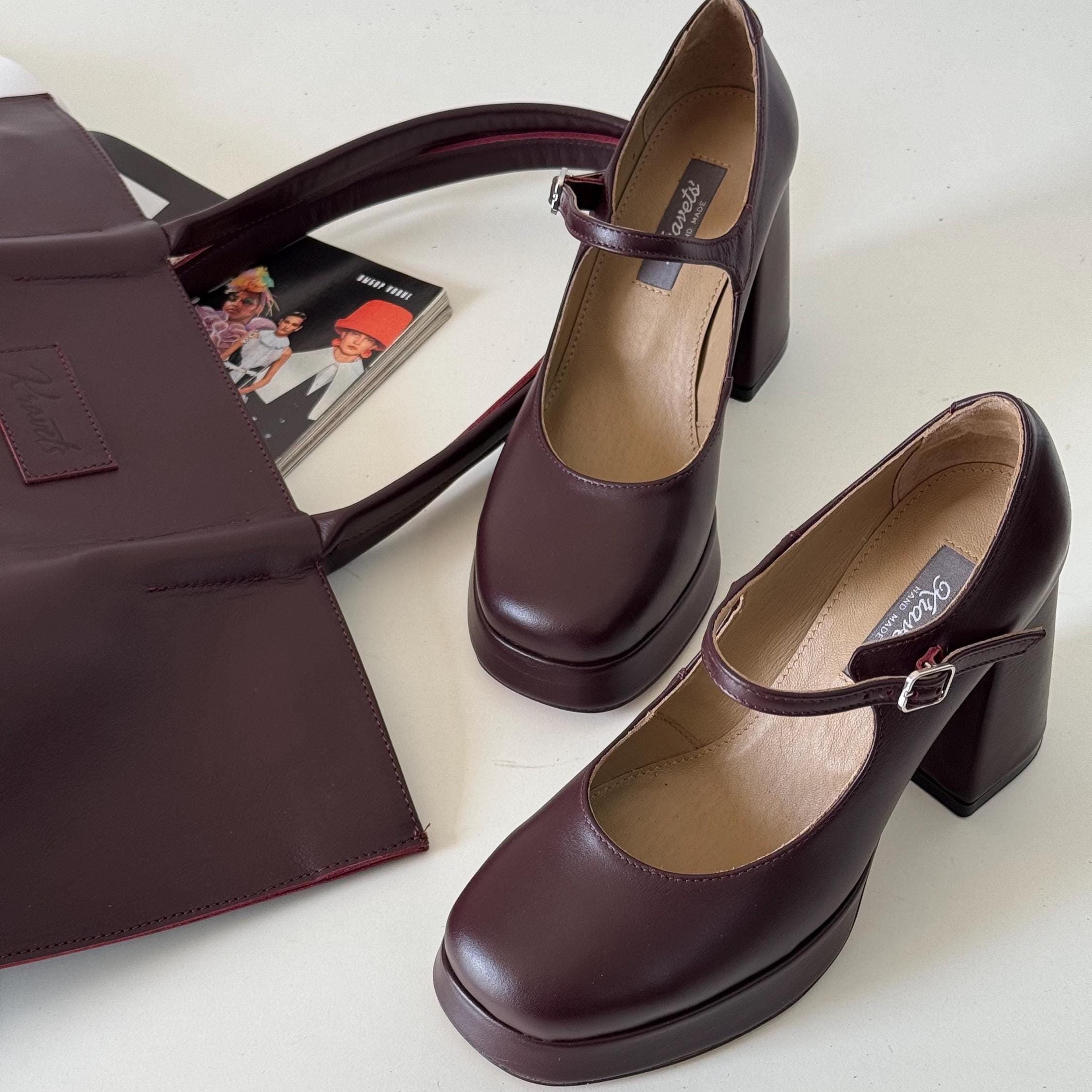 Fashion High Heels Burgundy Handmade Platform Women Elegant