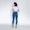 Add a touch of effortless cool to your look with these medium wash, high-waisted skinny jeans. Featuring a subtle distressed detail and a stylish ripped knee, these jeans are a perfect blend of edgy and classic. The soft, stretchy denim provides a flattering and comfortable fit that will make them your new go-to pair.